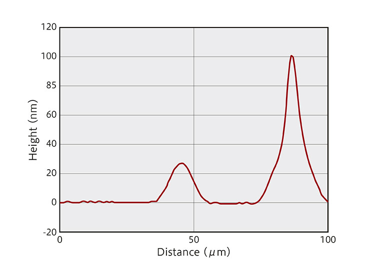 Nanometer scale bump-shape defects can be measured. By processing the images captured by the QPM optical module, cross-section profiles can also be obtained.