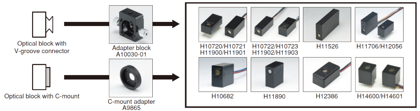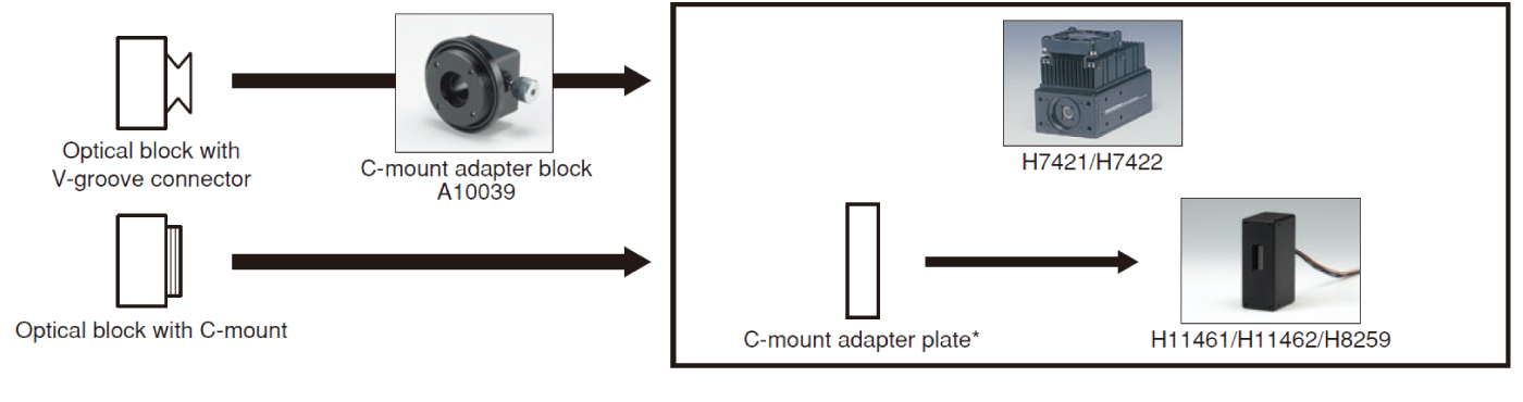 * In preparation for use with optical blocks, a C-mount adapter plate must be attached to the PMT module.Please notify us of your need for this adapter when ordering.
