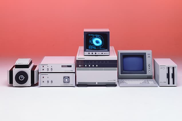 In 1971, microcomputers appeared on the market and their use spread rapidly. We were quick to open up new frontiers in computer-compatible video cameras. The model C1000 (vidicon camera for computers) was an innovative high-precision video camera with the basic performance and functions needed for image processing and measurement. This was quite different from other conventional video cameras that were designed just for “viewing” tasks such as for monitoring and surveillance. The C1000 enabled sophisticated image processing using a computer and its applications were extended to various fields. This combination of video camera and computer is still a feature of our current system products.